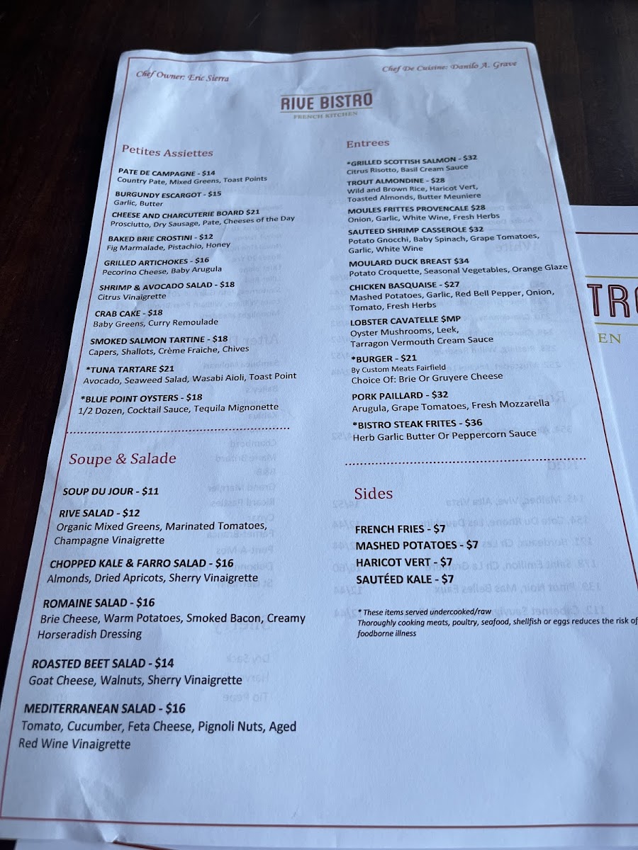 The thoughtfully crafted menu also includes enticing options like French onion soup and sumptuous salmon, leaving diners eagerly anticipating their next visit. Rive Bistro truly shines as a gem in Westport, combining quality food with a warm, inviting atmosphere.